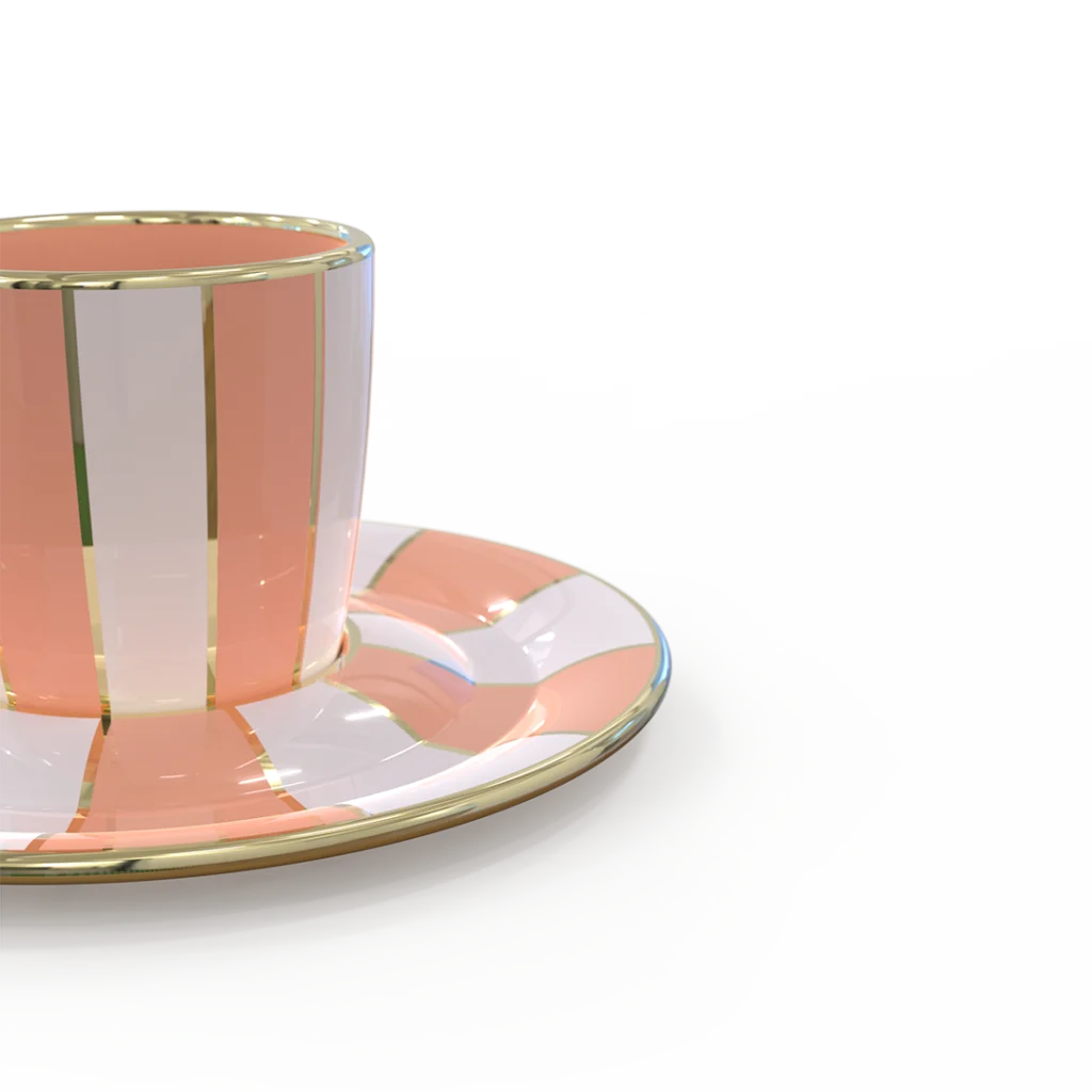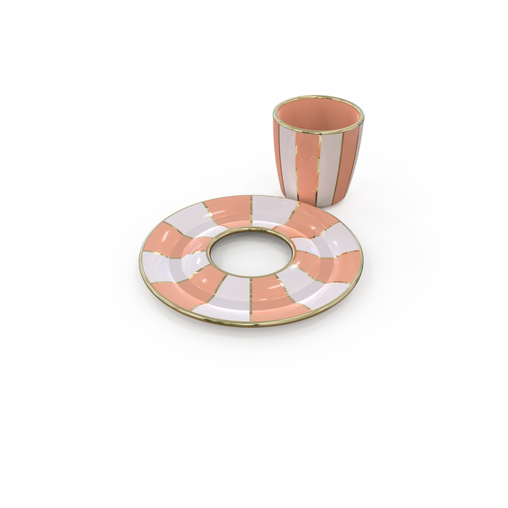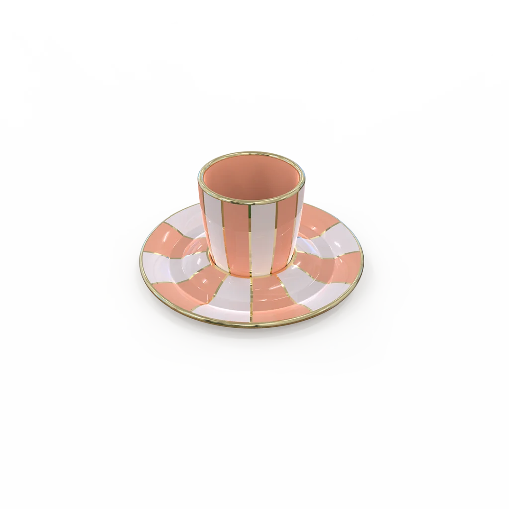 Wake up to island elegance with the Coral Stripe Espresso Cup & Saucer. Featuring hand-painted blush and white stripes with gleaming gold accents, this set brings playful sophistication to your daily ritual. Inspired by Bahamian sunshine and crafted for joyful moments, it’s the perfect way to savor every sip in style.