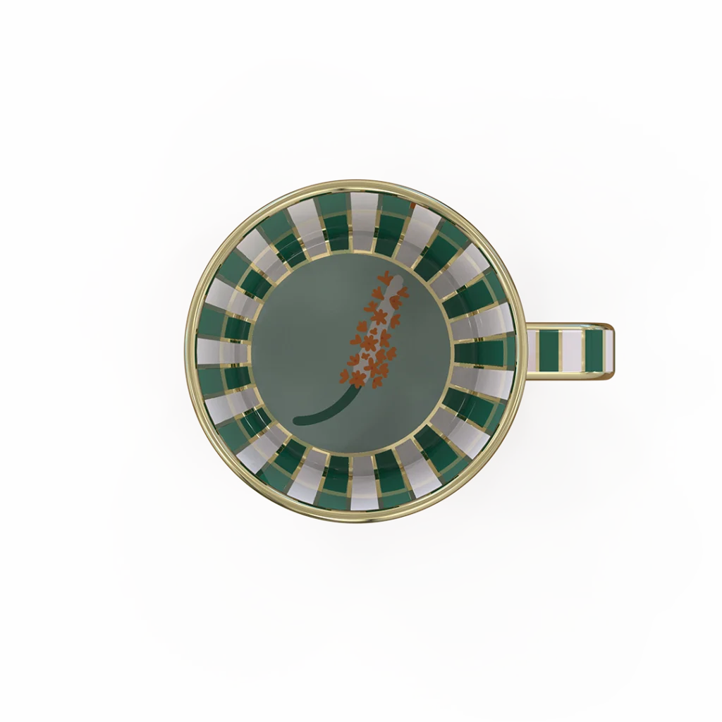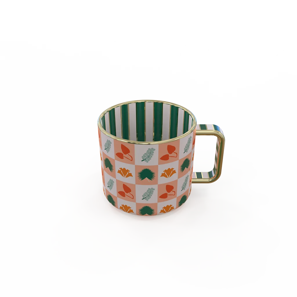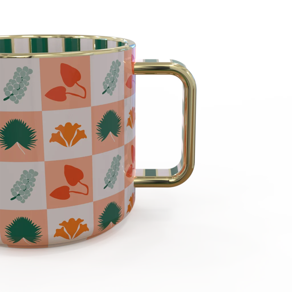 Start every sip with a smile. The Joyful Botanica Checkerboard Mug features a playful grid of Bahamian-inspired motifs—seagrape, palm, and hibiscus—in vibrant coral, emerald, and gold. Striped inside walls and a bold, gold-edged handle add a touch of surprise and delight, while a hidden floral accent at the base brings a secret moment of joy […]
